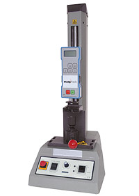 mit definiertem Gewicht auf dem Prüfgut aufgesetzt wird. Das