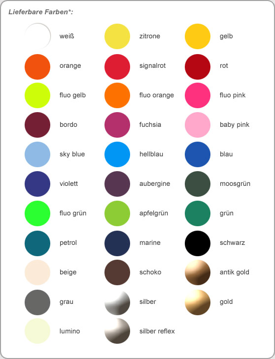 der Darstellung der im Rahmen unserer Produktpalette verfügbaren Farben grundsätzlich