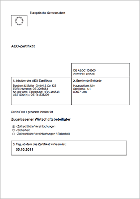 Seit Oktober 2011 sind wir als "Zugelassener Wirtschaftsbeteiligter/Zollrechtliche Vereinfachungen"