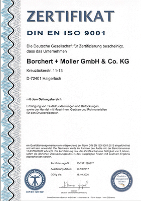 für den Druckbereich ein Qualitätsmanagementsystem entsprechend der Norm DIN EN ISO 9001:2015